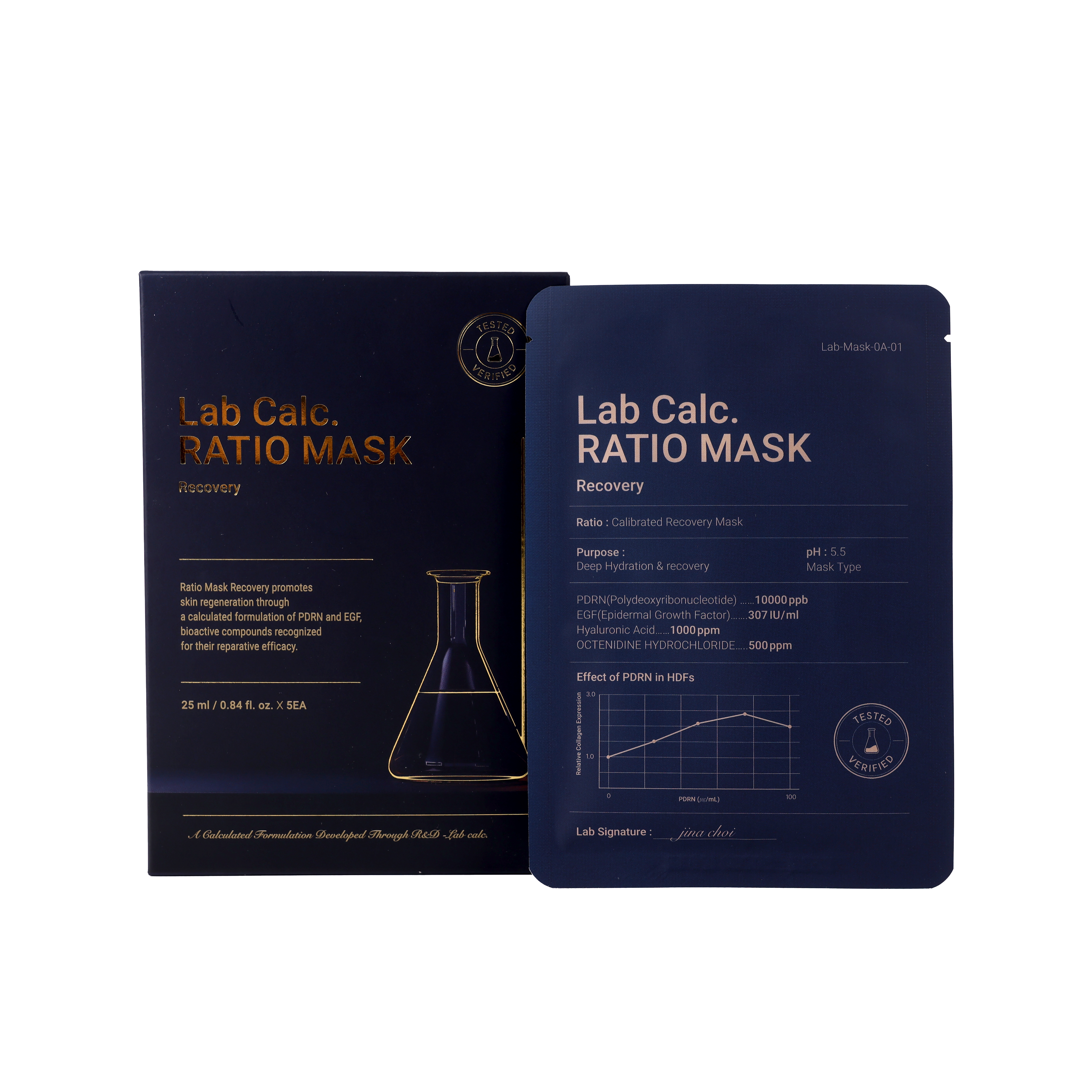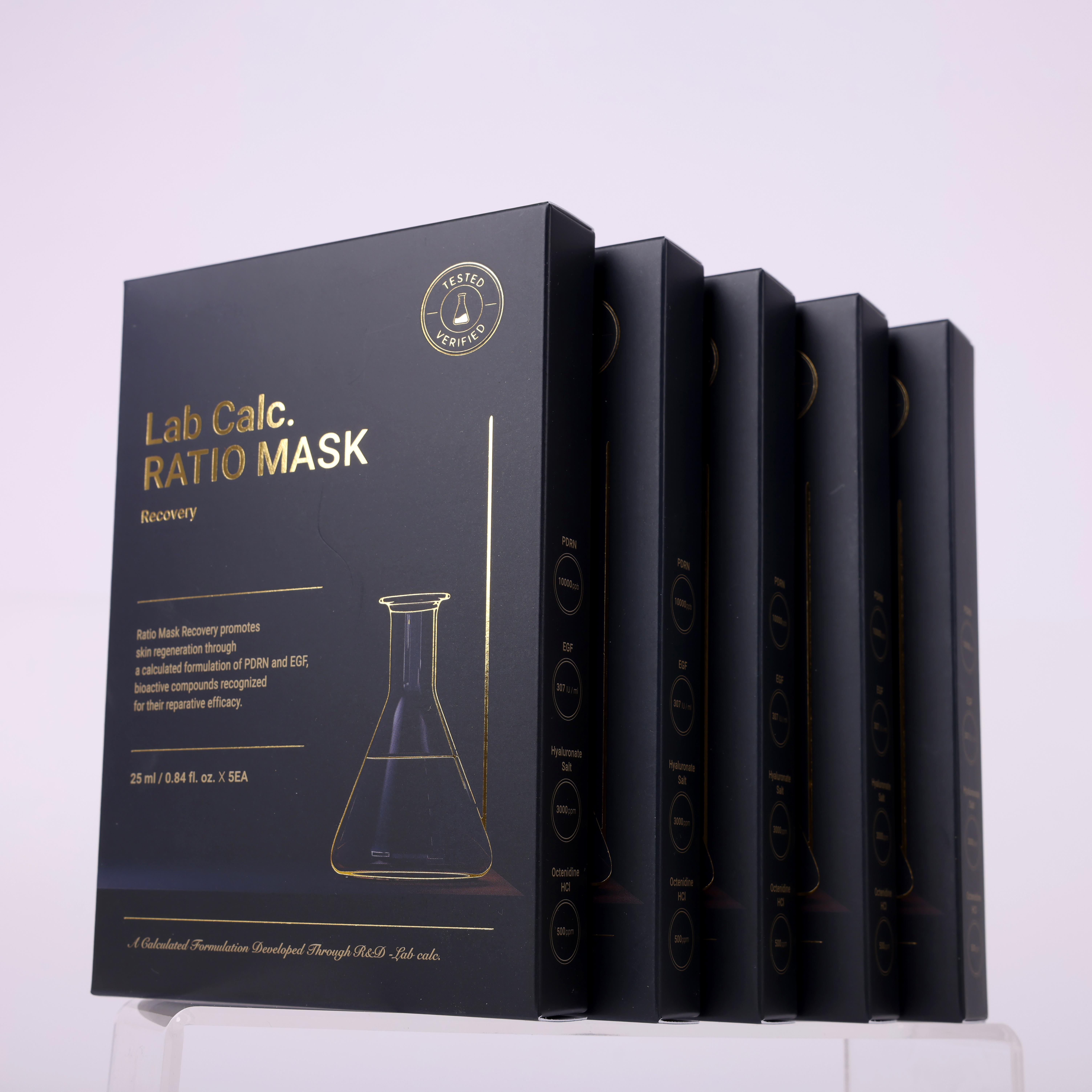 List 레이쇼 마스크팩 리커버리 Size - Product Features - Product Description - Product Function - Product Color - KakaoTalk Inquiry 1:1 Inquiry Product Details Lab Calc. Ratio Recovery Mask Pack은 피부가 필요로 하는 유효 성분의 최적 비율을 정 밀하게 계산하여 완성된 프리미엄 마스크 팩입니다.피부 탄력을 채워주는 핵심 성분 PDRN이 콜라겐 생성을 촉진하고, EGF(Epidermal Growth Factor)가 피부 세포 재생을 도와 탄력 개선은 물론 모공 관리와 피 부 결 정돈에 도움을 줍니다.정교한 비율 설계를 통해 피부 본연의 균형을 되찾고, 건강하고 탄력 있는 피부로 가꿔주는 과학 기반의 재생 솔루션입니다. List